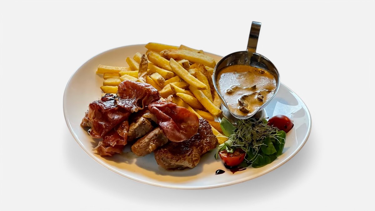 medailónky z bravčovej panenky s prosciuttom a kuracou pečeňou na cognakovej omáčke 200g / obsahuje: 1