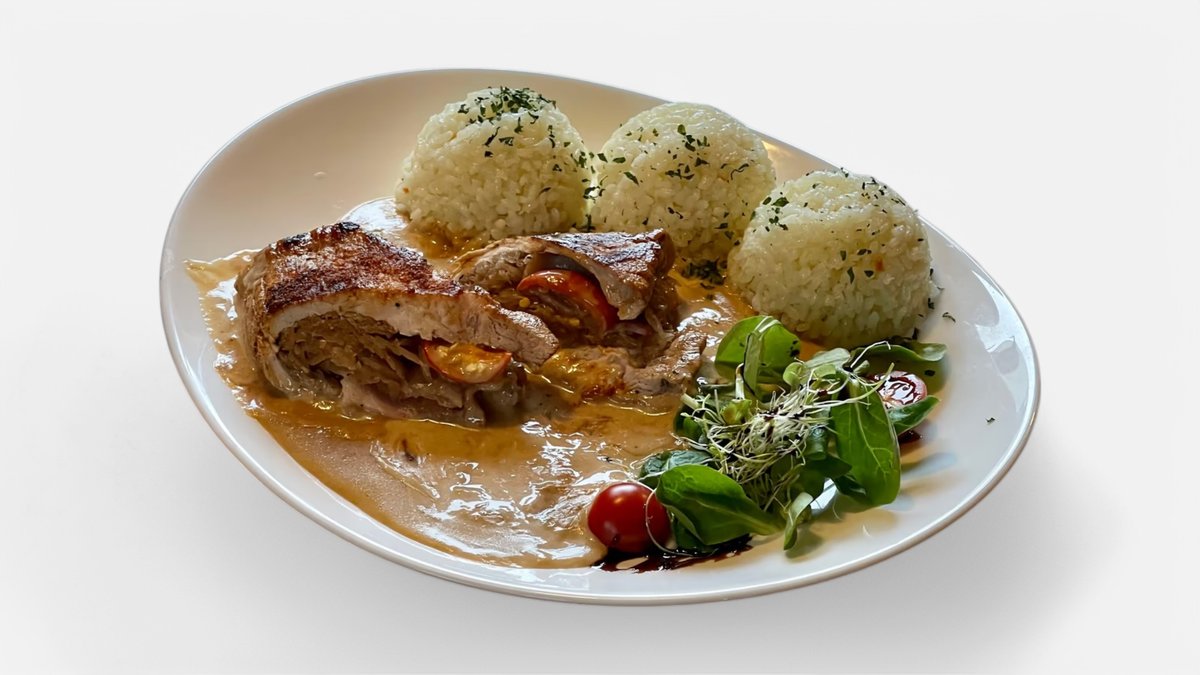 karé plnené kyslou kapustou, slaninkou a feferónmi, podliate smotanovou omáčkou 150g / obsahuje: 7