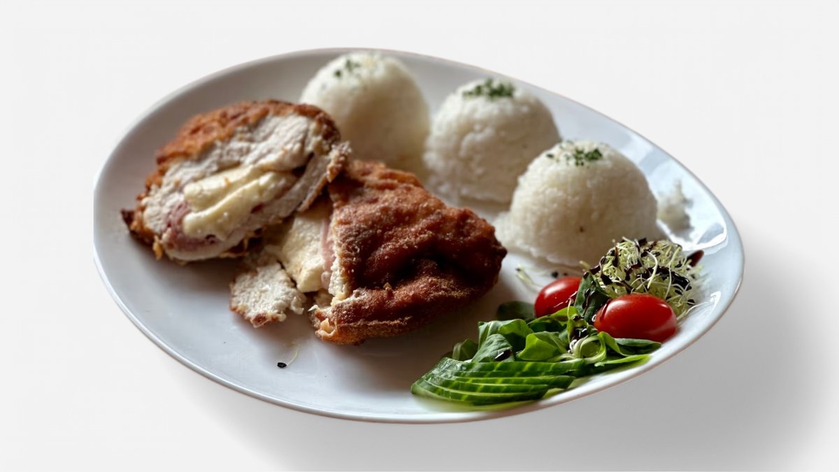 vyprážané kuracie prsia so šunkou a syrom 150g / obsahuje: 1, 3, 7