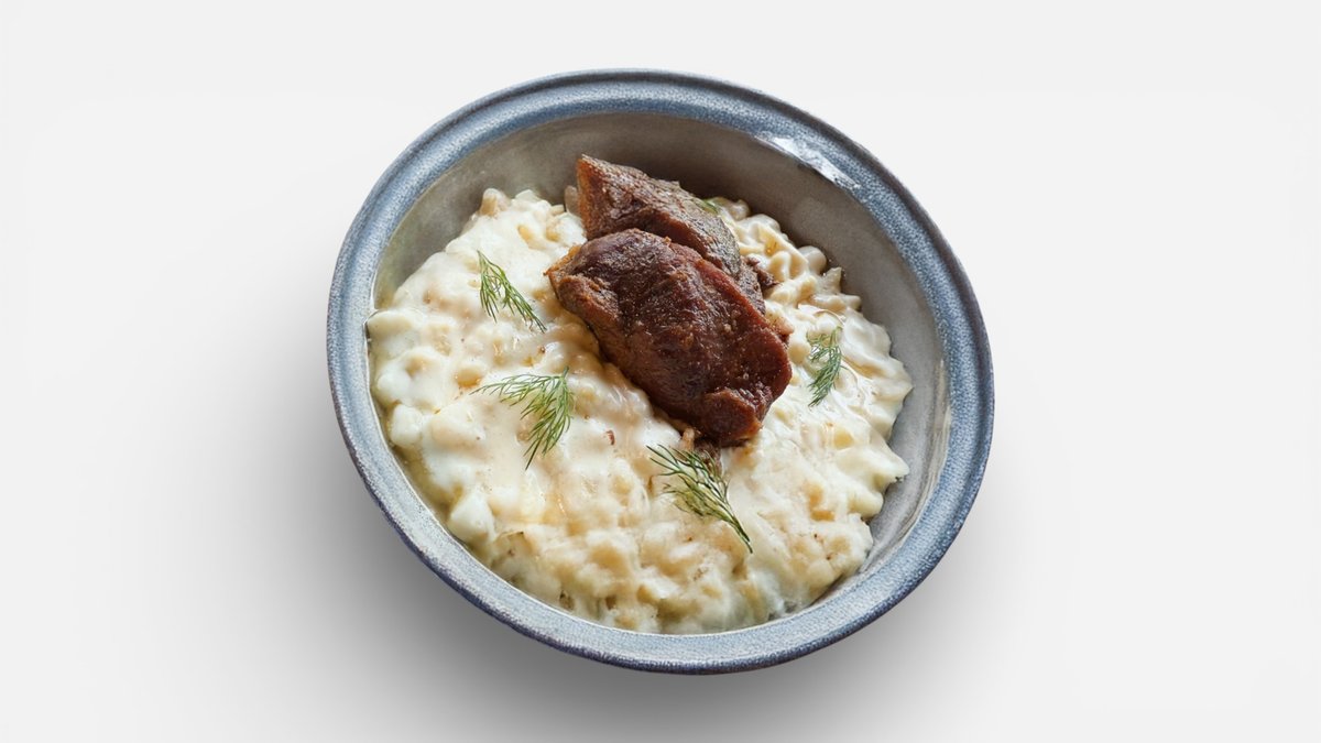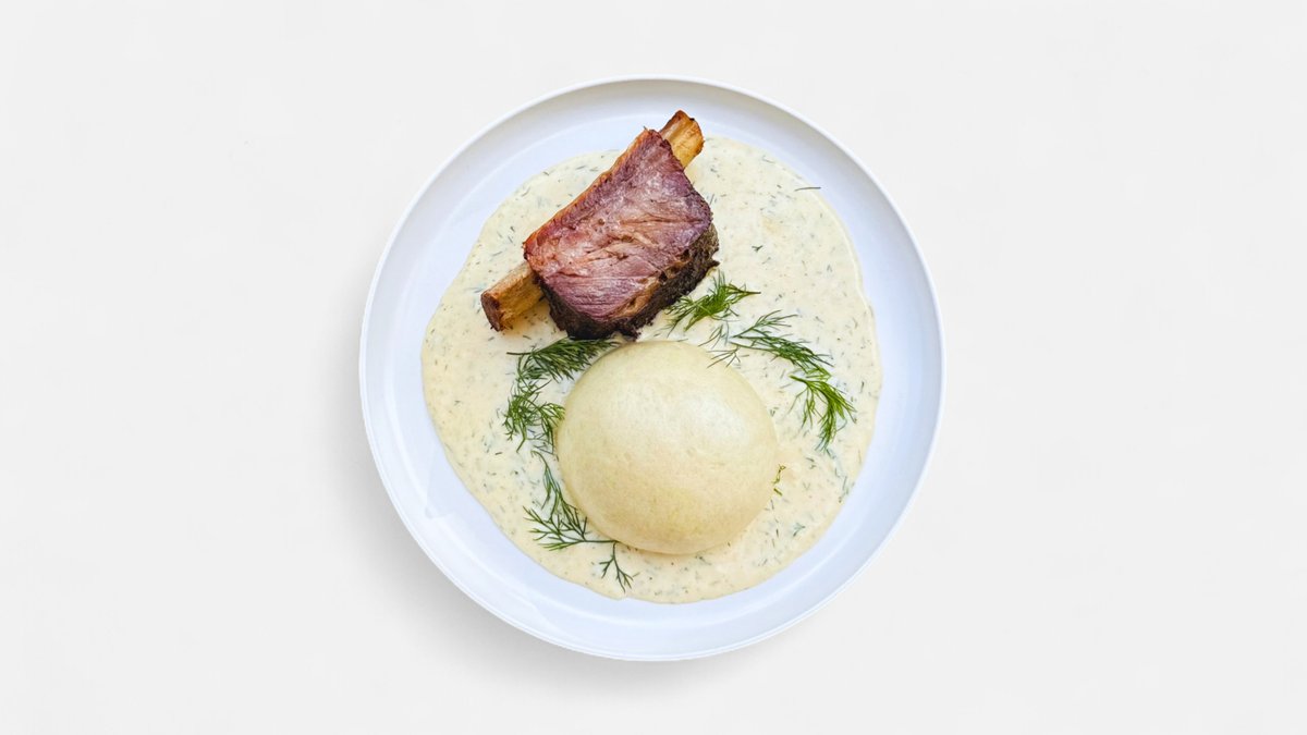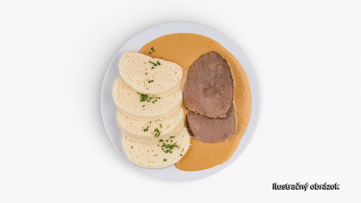 Kôprová omáčka, pomaly pečené hovädzie, knedľa