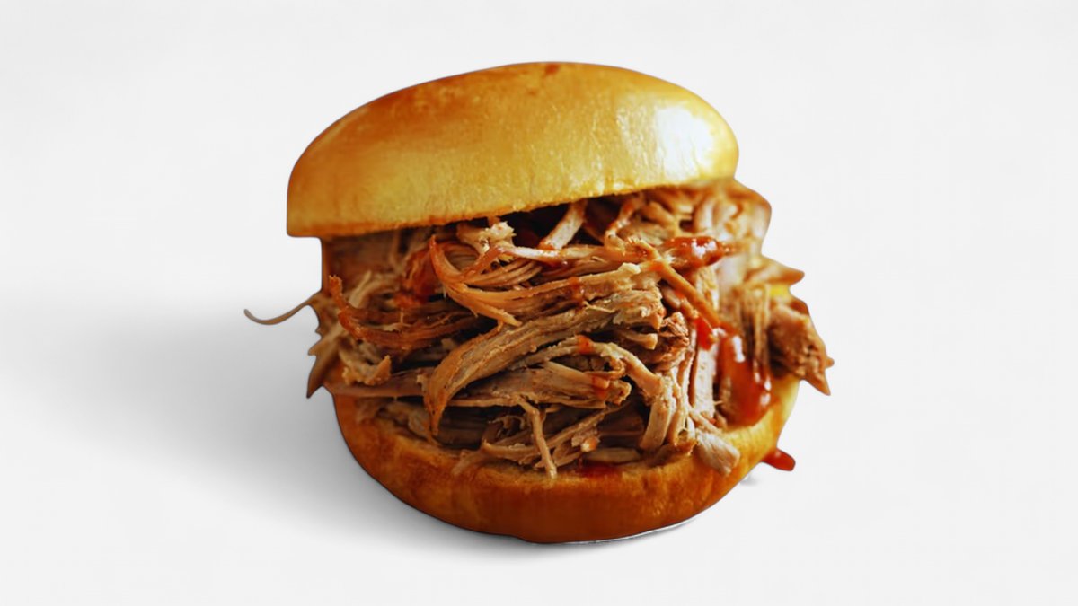 Pulled pork, cheddar, nakladaná uhorka, slaninový džem, bbq