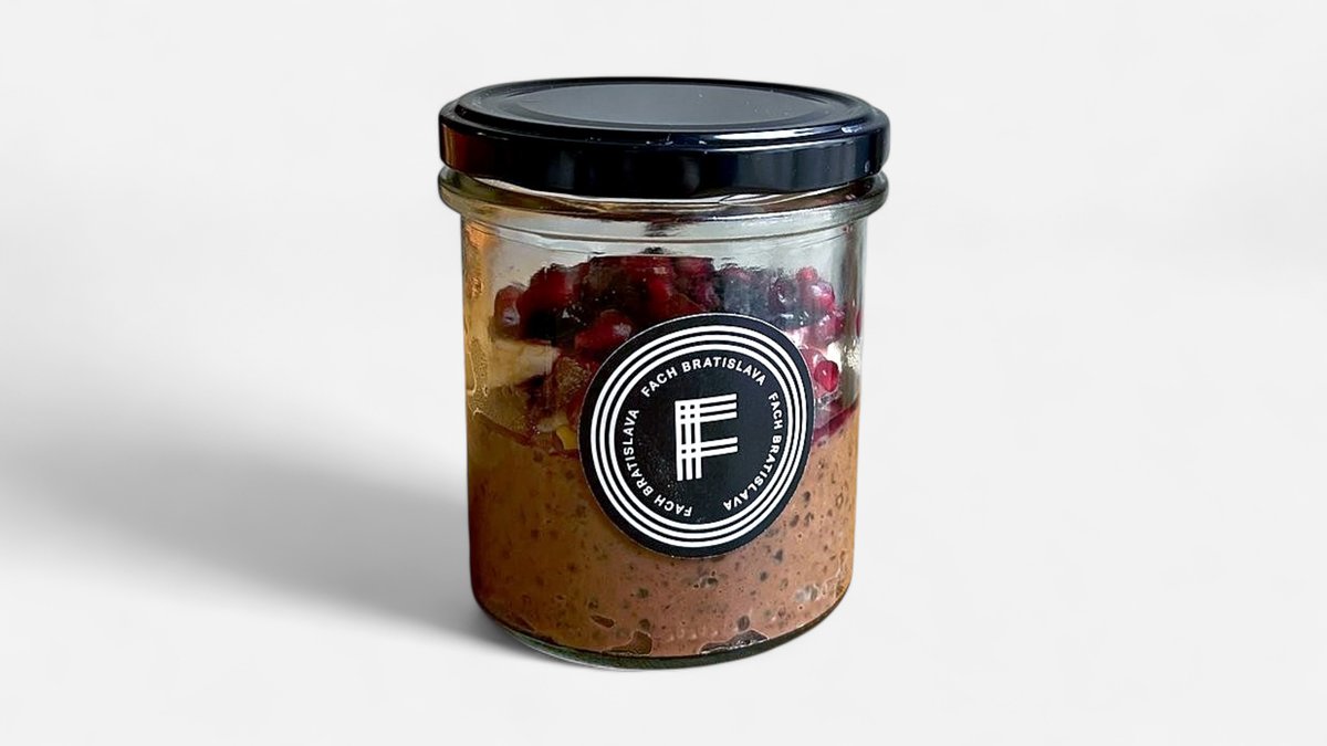 Horká čoko, tapiokové perly, rýžové a kokosové mlieko, banán, granátové jablko, ríbezle , pistácie, maldonská soľ, kakao