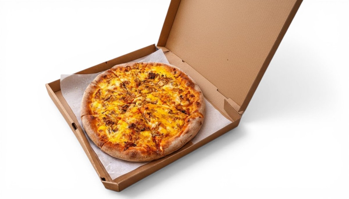 Paradajkový základ, syr mozzarella, šunka, šampiňóny, kukurica 700 g upozornenie: (Pizzu prepečieme aby bola upečená poriadne preto sa môžu kraje zdať spečené ale pizza nieje prihorená ,treba pozrieť spodok )