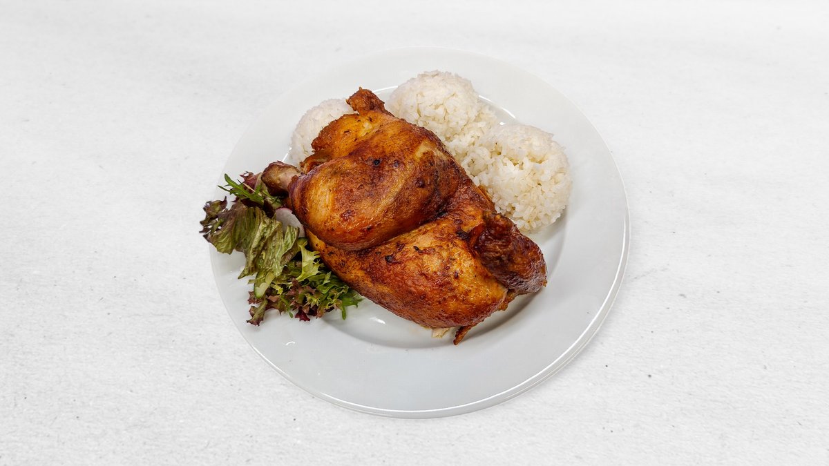 Polovica grilovaného kuraťa, vyberte si prílohu a príchuť. 550g