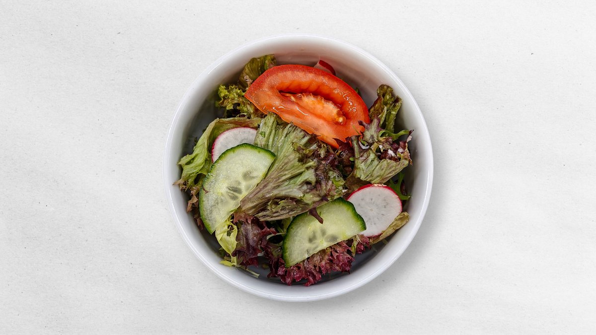 Mix listových šalátov, grilované kuracie prsia/crispy strips, paradajka, redkvička, uhorka, opečený taliansky chlieb (290g/ obsahuje: 1,3,5,7,11)