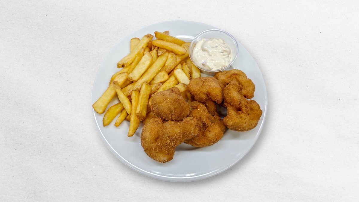 Chrumkavé a šťavnaté kuracie nugetky 10ks s hranolkami a dresingom podľa výberu 350g/ A:1,3,7