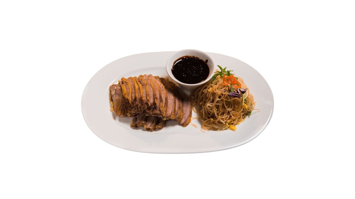 široké ryžové rezance, vajíčko, pek.kapusta, mrkva, pór, sójové klíčky, smažená cibuľa, chrumkava kačica 300g / obsahuje: 2,4,5,6