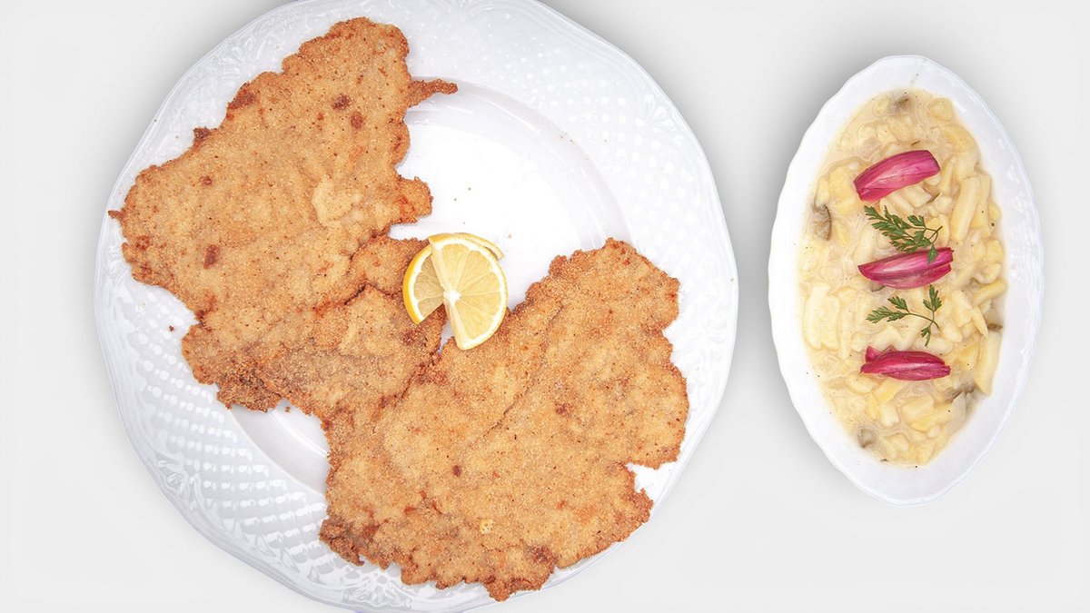 Leberfingerova obrovská teľacia šnicľa, slovenský zemiakový šalát (1, 3, 7 | 200 g)