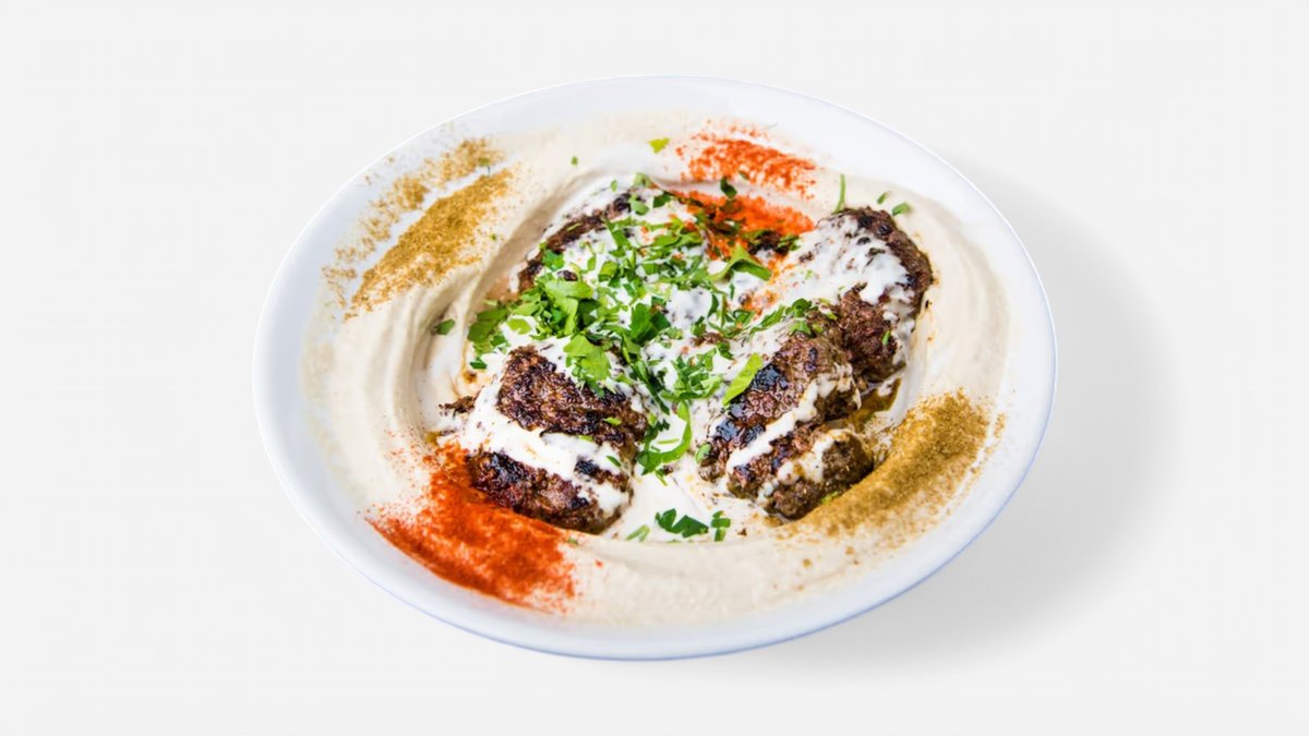 grilované mleté jahňacie a teľacie mäso s orientálnymi koreninami, podávané s tahini obsahuje: 11