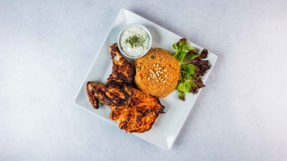 mix grilu pre jedného obsahuje jahňací špíz alebo teľací špíz, shish taouk a kafta, podávané s paradajkami, cesnakovým dipom a arabským chlebom 300g / obsahuje: 1,7,11