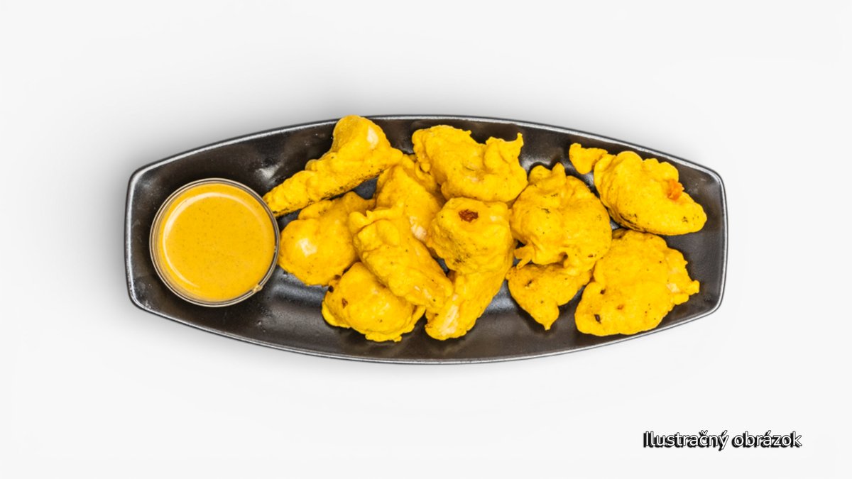 200g Karfiol , zemiaky, šampiňóny, baklažán, cuketa obalené v cicerovej múke s indickým korením