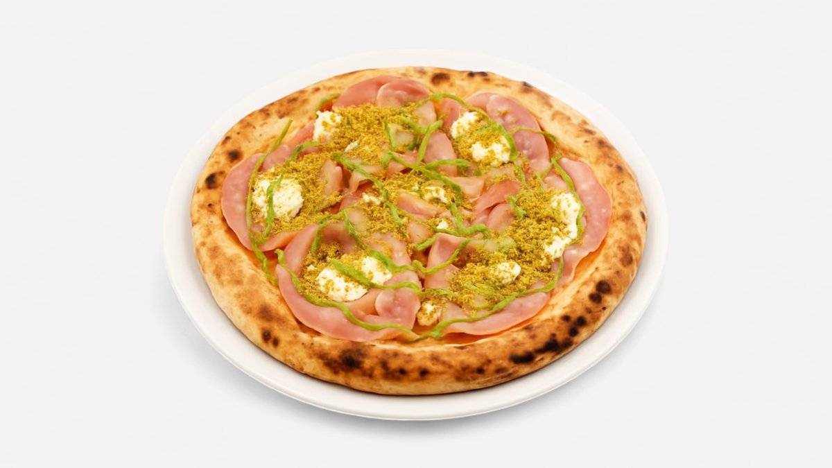 mozzarella fior di latte, mortadella di pistachio, stracciatella di bufala, pistáciové maslo, drvené pistácie 500g / 100g / obsahuje: 1, 7, 8, 12