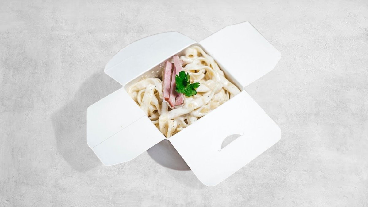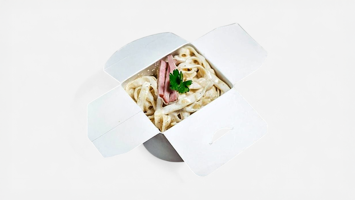 Cestoviny so smotanou, cesnakom, šunkou a talianskym syrom. Lahodné a krémové. 450g / obsahuje: 1,3,7