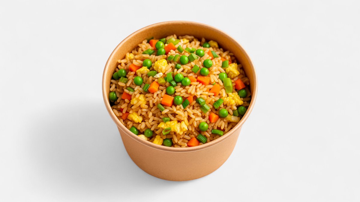 Ryža, mrkva, cibuľa, hrášok, maslo, sójová omáčka, sezamový olej, zelená cibuľka. A(6.11.7) 400 gr
