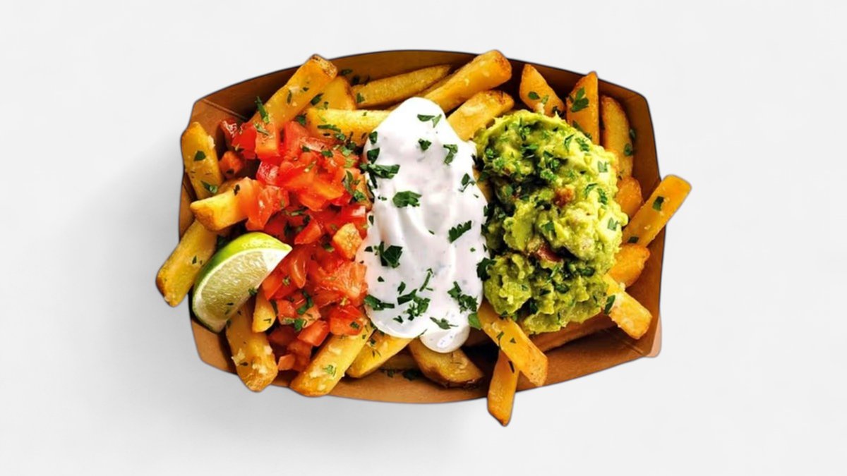 Hranolky s jogurtovo–avokádovým dressingom a čerstvými paradajkami A: (1,7,8)
