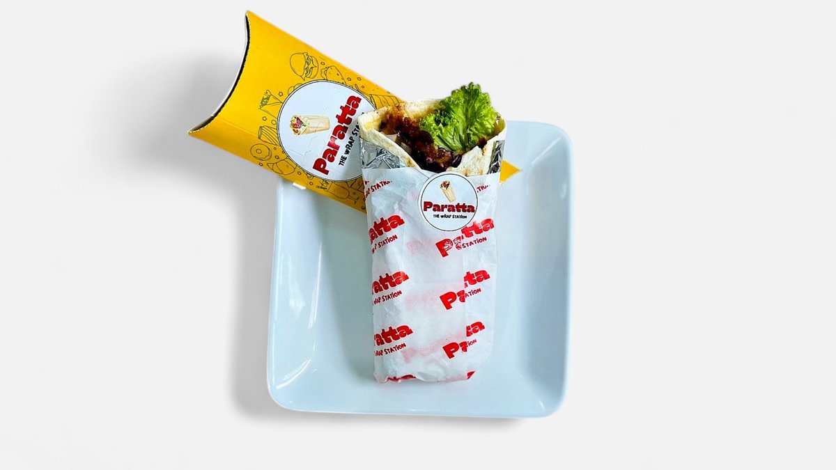 Paratta filled with fluffy egg omelette, melted cheese, creamy mayonnaise,tomatto, tangy ketchup, fresh lettuce, red cabbage, salad mix, and jalapeños.