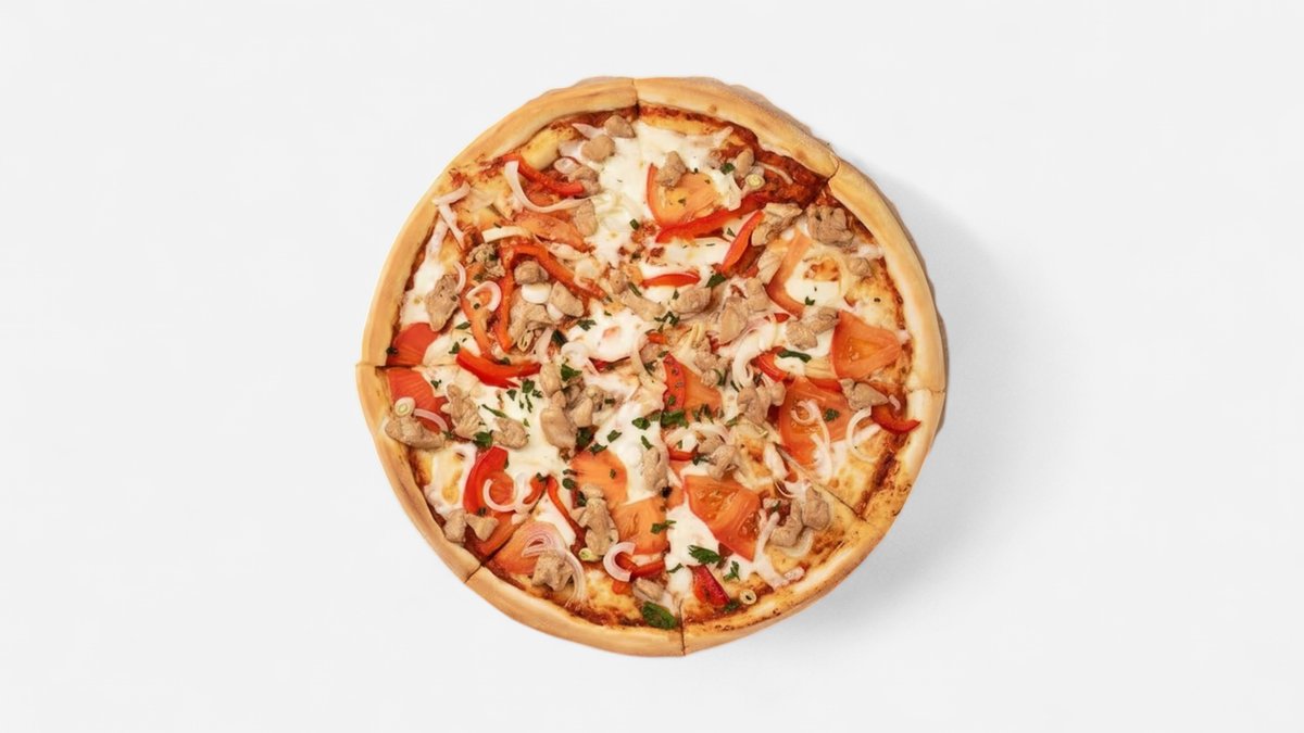 Chicken kebab pieces, onions, tomato, mozzarella, and special sauce.