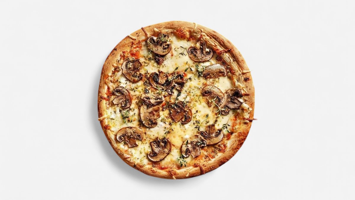 Fresh mushrooms, olives, onion ,and mozzarella cheese, basel.