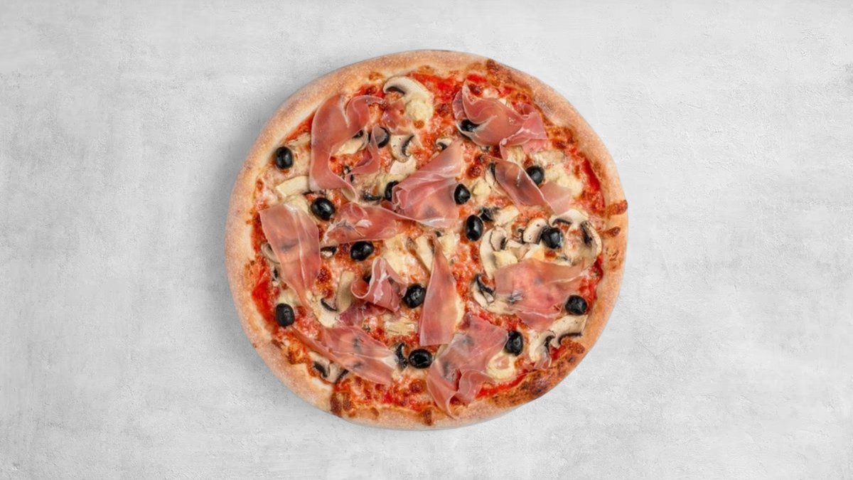 Pomodoro, saláma, šunka, slanina, klobása, šampiňóny syr 650g / obsahuje: 1,3,7