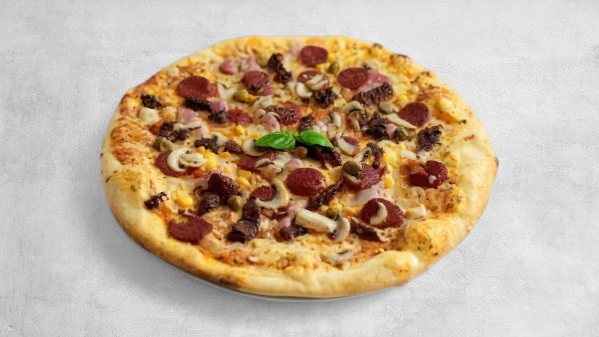 Pomodoro, syr, saláma, kukurica, šampiňóny, klobása 500g / obsahuje: 1,3,7