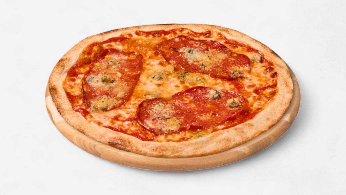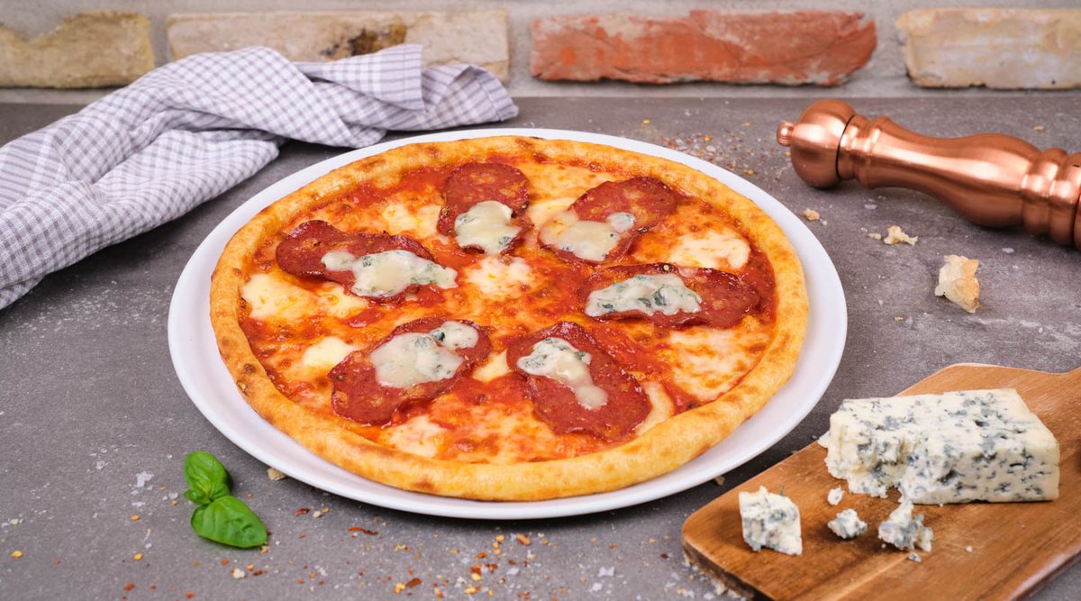 paradajkový základ, mozzarella, pikantná talianska saláma, gorgonzola 32cm 595g / obsahuje: 1,7