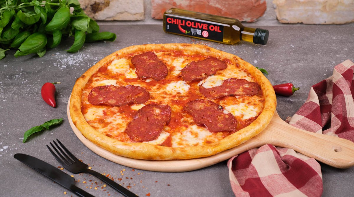 paradajkový základ, cesnakový olej, oregano, 100 % vegánska