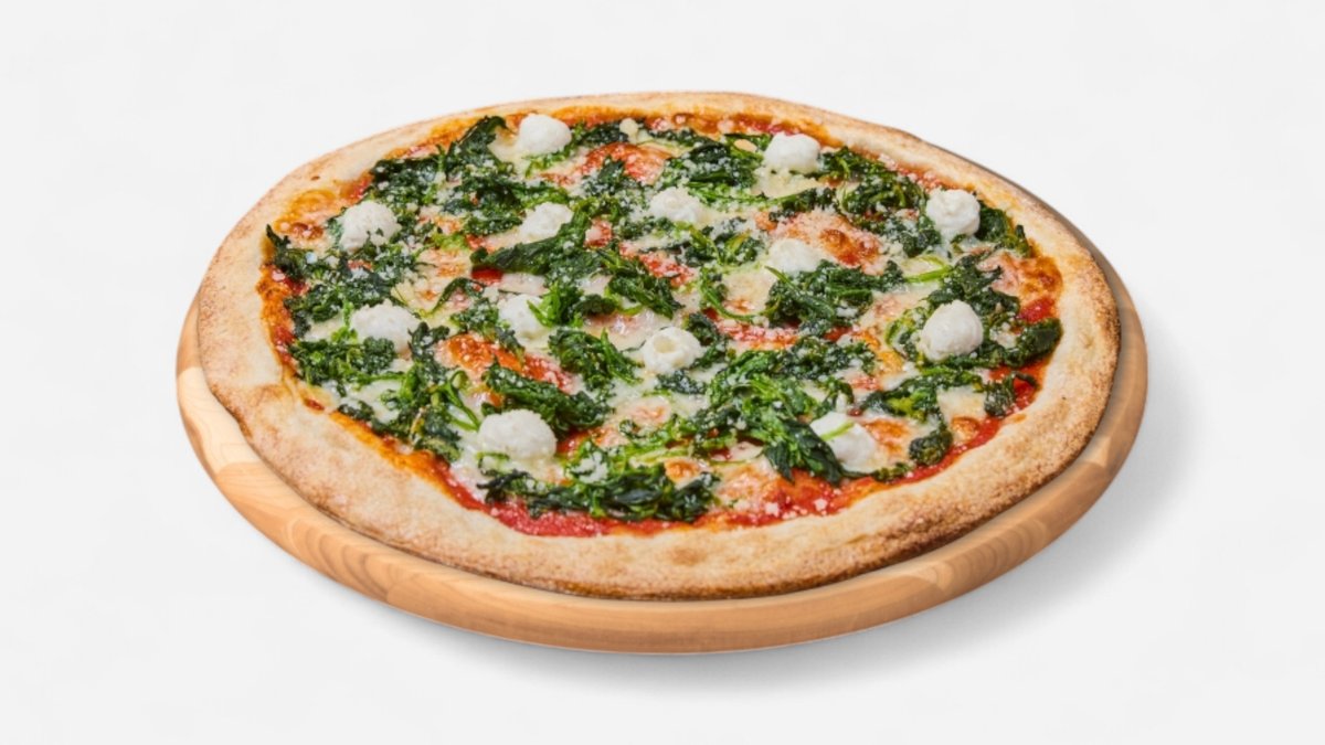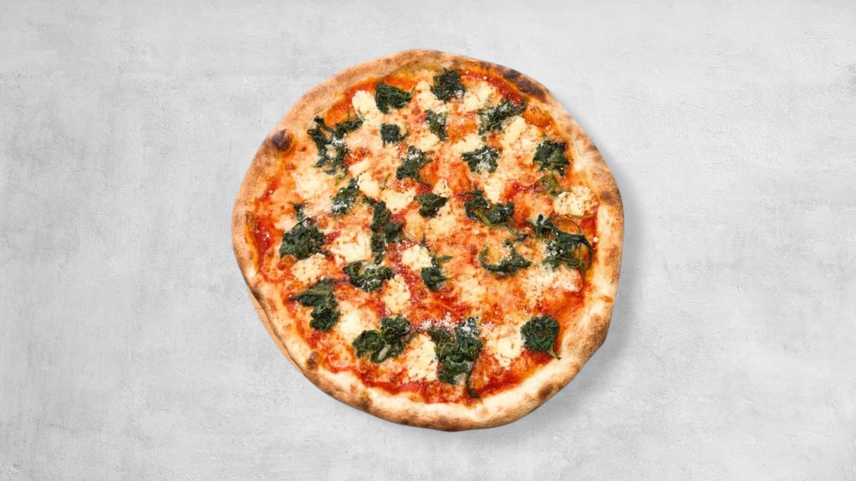 paradajkový základ, mozzarella, špenát, ricotta, parmezán 32cm 612g / obsahuje: 1,7