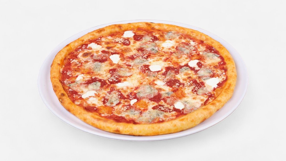 paradajkový základ, mozzarella, ricotta, gorgonzola, parmezán 32cm 587g / obsahuje: 1,7