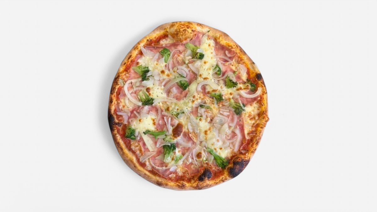 paradajkový základ, gouda, šunka, mozzarella, brokolica, cibuľa,oregáno 600 g / obsahuje: 1,12,15,7,3