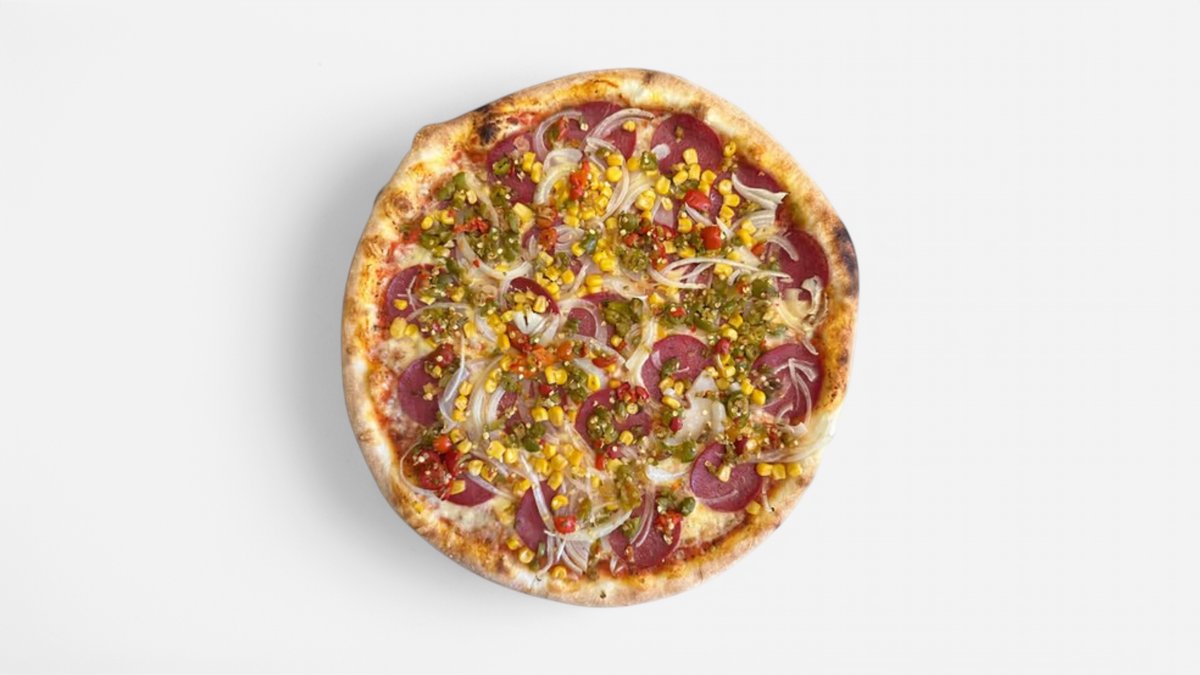 paradajkový základ, gouda, salám, kukurica, cibuľa, feferóny,oregáno 550 g / obsahuje: 1,12,15,7,3