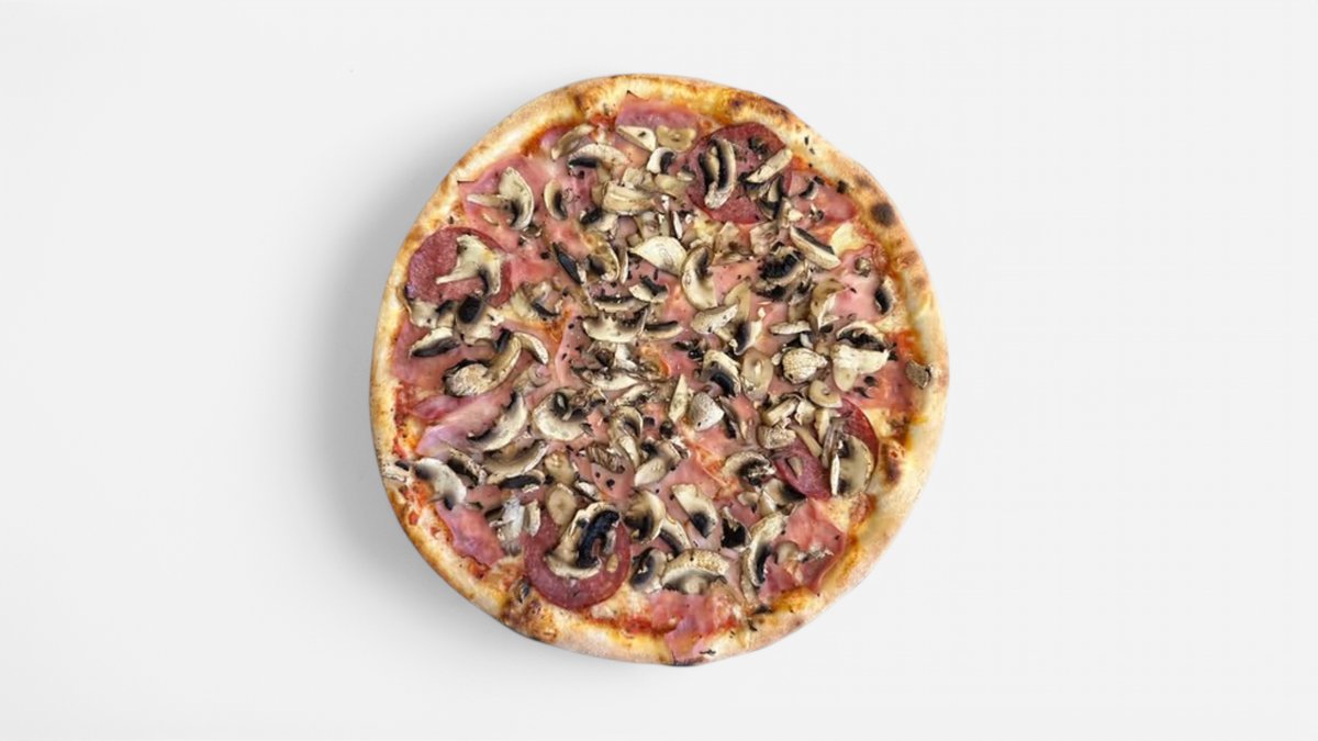 paradajkový základ, gouda, šunka, šampiňóny,oregáno 550 g / obsahuje: 1,12,15,7,3