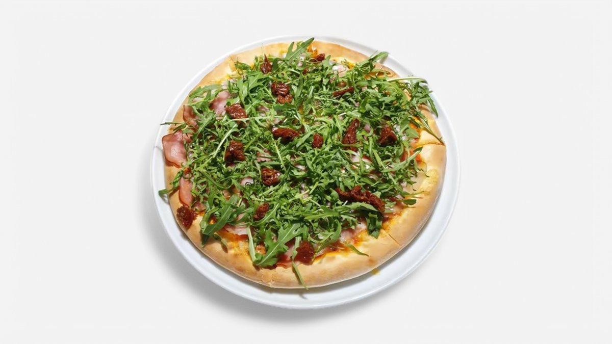 paradajkový základ, gouda, prosciutto, rukola, sušené paradajky,oregáno 500 g / obsahuje: 1,12,15,7,3