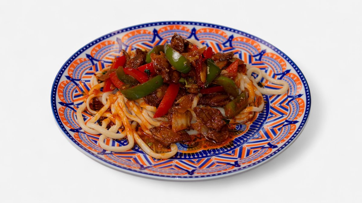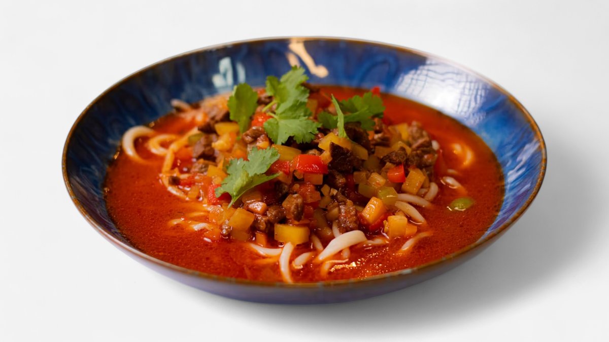 Domáce rezance s hovädzím mäsom a zeleninou v mierne pikantnej omáčke (300 g) /1,3,6,9/