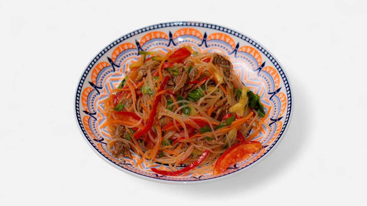 Studený zeleninový šalát s ryžovými rezancami a hovädzím mäsom (300 g) /6/