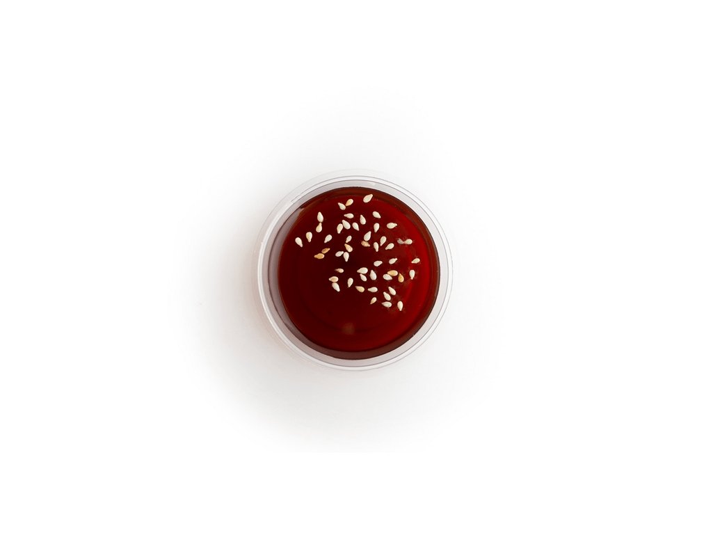 Kuracie mäso vyprážane v omačke teriyaki, smotanový syr, uhorka, sezam, pažitka, ľadový šalat, spicy omačka. Váha: 290g Alergény: 1, 4, 6, 7, 9