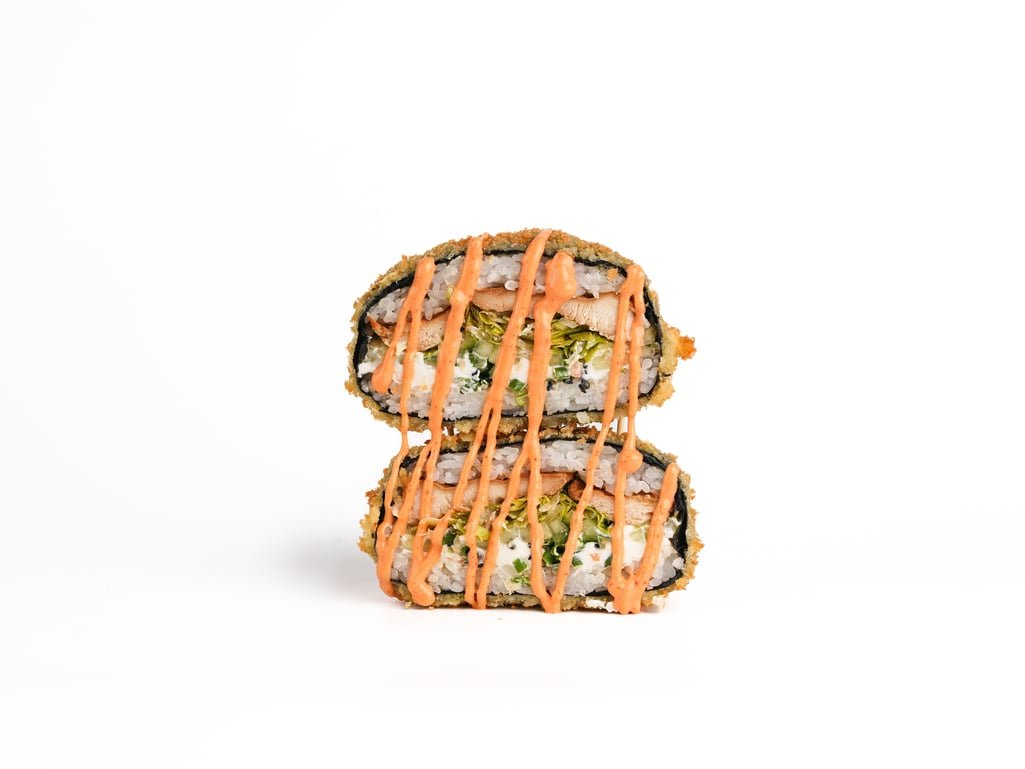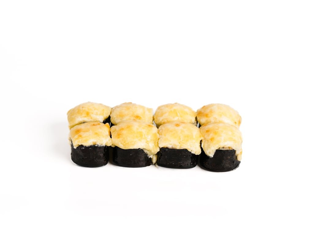 Smotanový syr, uhorka, vyprážaný losos, syr edam, unagi omáčka. Váha: 260g Alergény: 1, 3, 4, 7