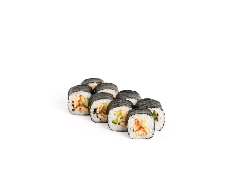 Mix z krabov, masago kaviár, avokádo, uhorka. Váha: 245g Alergény: 1, 2, 3, 4, 6, 10