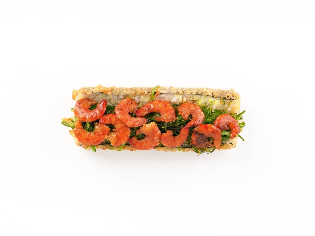 Kreveta, masago kaviár, smotanový syr, ľadový šalát, pikantná omáčka. Váha: 320g Alergény: 1, 2, 3, 4, 6, 7, 10