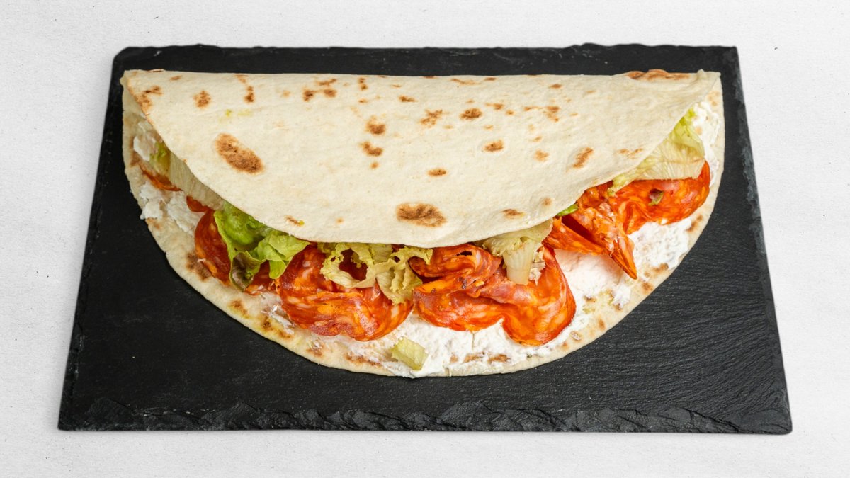 stracciatella, pikantná saláma ventricina, tabasco, šalát / 1,7