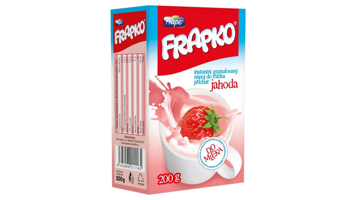 Frape Frapko Instantný granulovaný nápoj v prášku s príchuťou jahodovou do mlieka 200 g