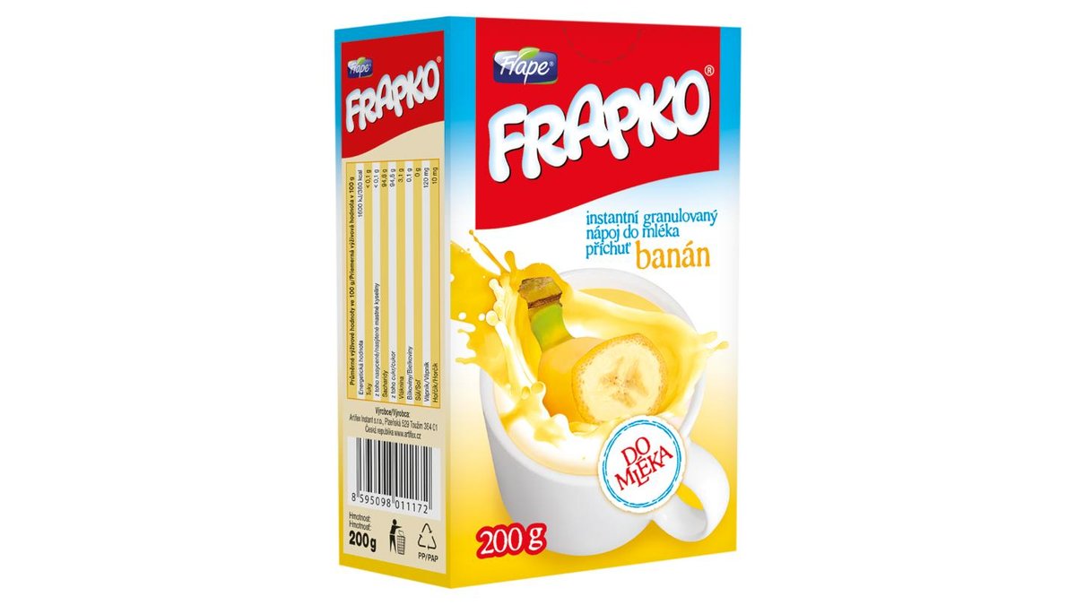 Frape Frapko Instantný granulovaný nápoj v prášku s príchuťou banánovou do mlieka 200 g