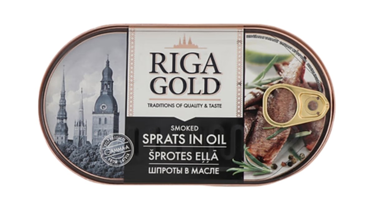 Konzervy Šproty "Riga Gold" 190g/ Консервы Шпроты "Riga Gold" 190г