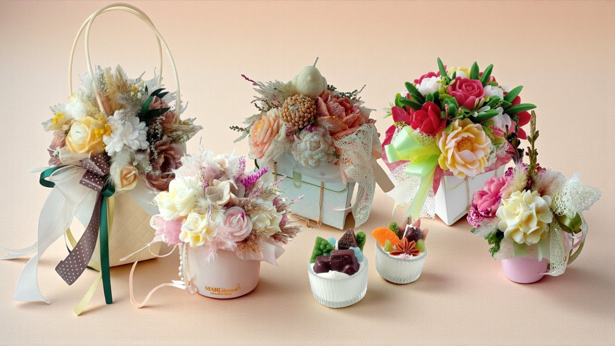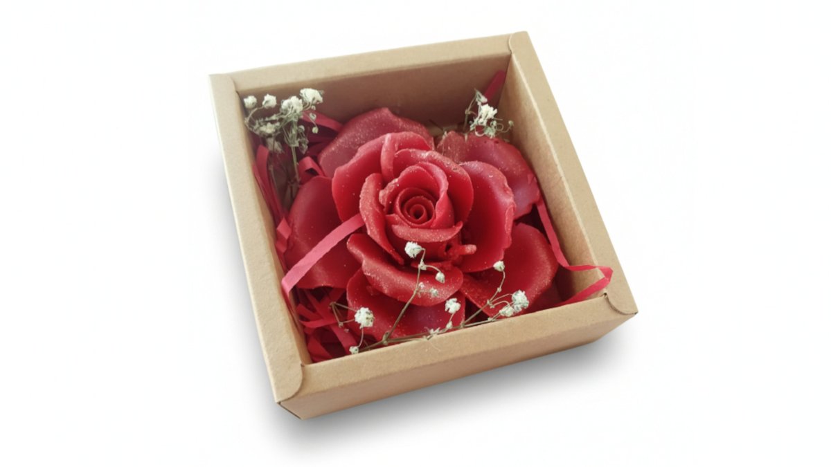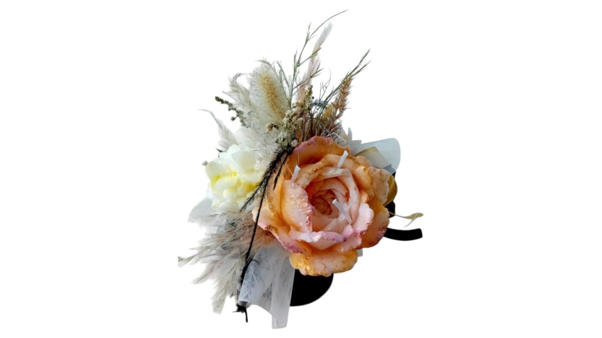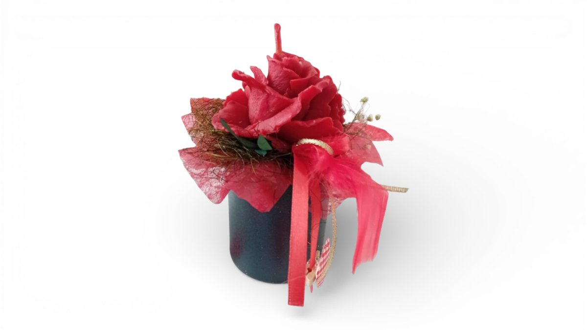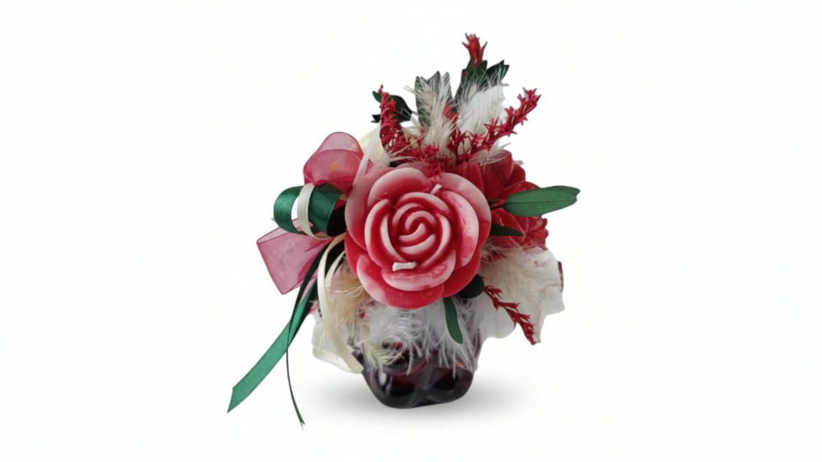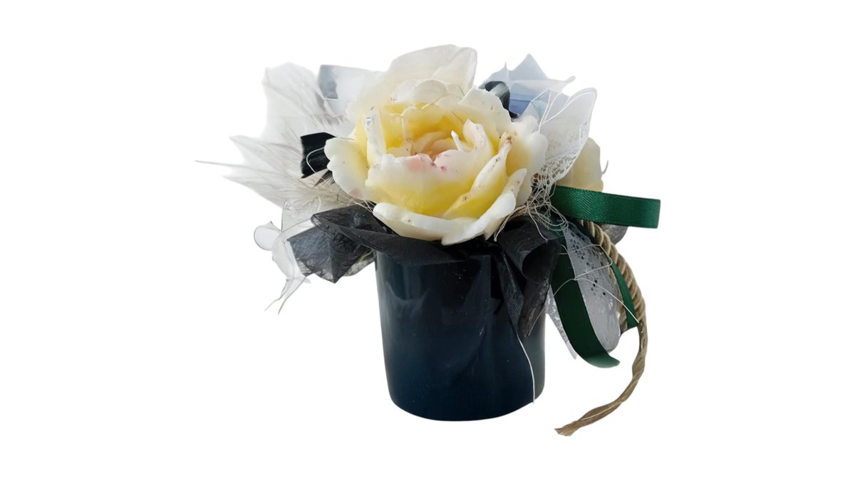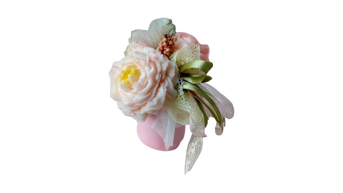 Ručne odlievané sviečkové kvietky s krásnou sviežou vôňou doplnené o sušené a stabilizované kvietky starostlivo naaranžované do elegantného celku.
