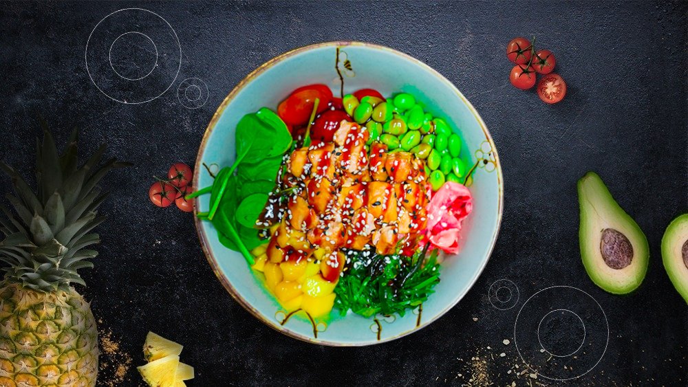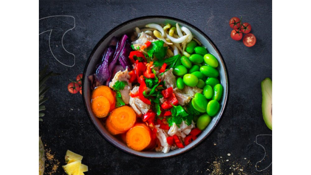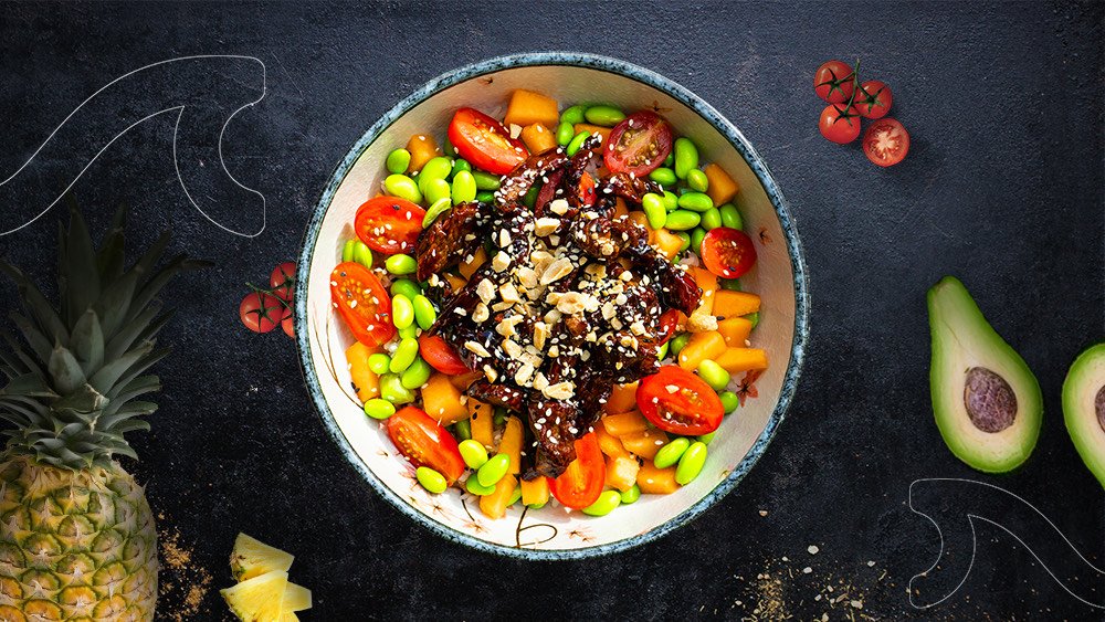 Namixujte si ingrediencie - 1x základ, 1x proteín, 1x ovocie, 4x zelenina, 1x omáčka, 1x dochutenie