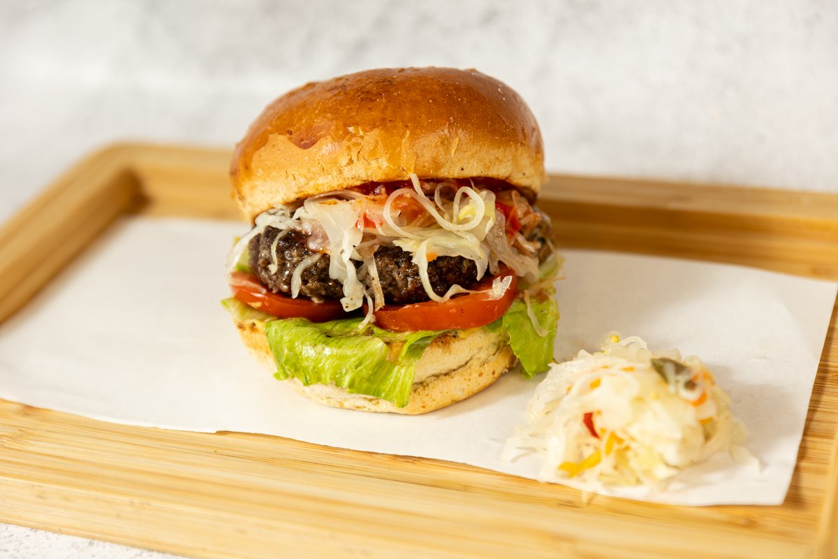 hovädzie mäso, dvojitý írsky cheddar syr, kyslá uhorka, domáca omáčka, cibuľa / obsahuje: 3,7
