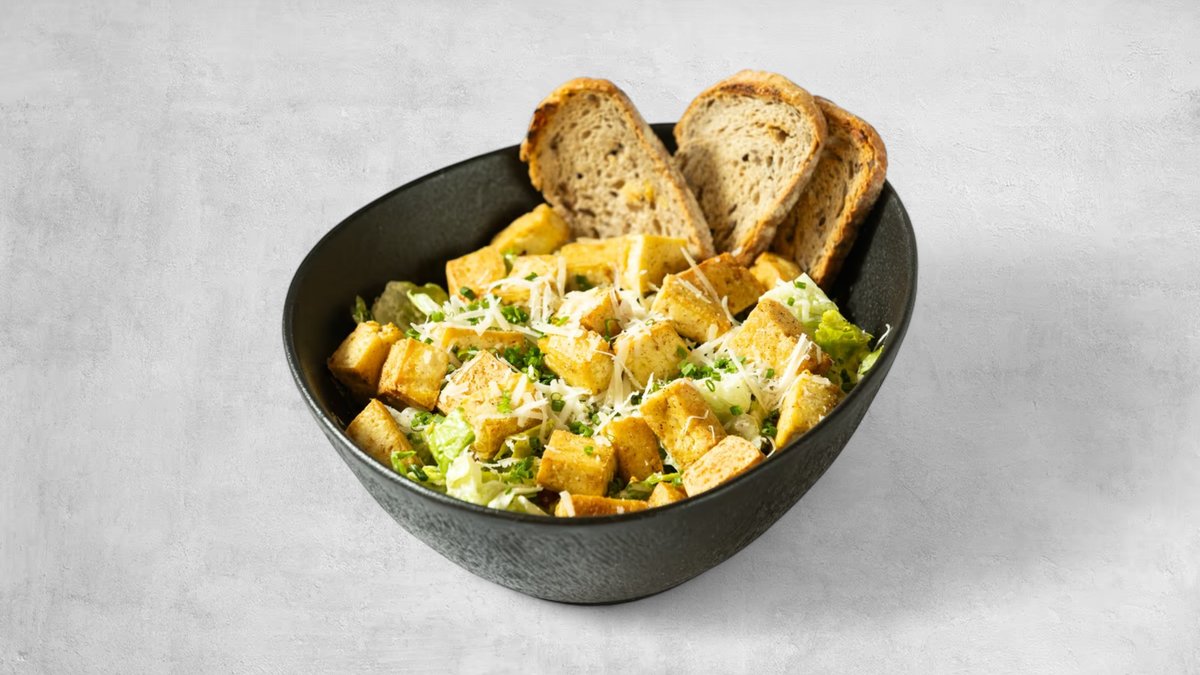 rímsky šalát, cézar dresing, parmezán, chrum, chlieb / obsahuje: 1,7 / Római saláta, cézár öntet, parmezán és ropogós kenyér
