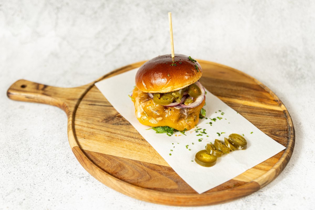 hovädzie mäso, domáci bacon-jam lekvár, írsky cheddar syr, domáca omáčka / obsahuje: 3,7