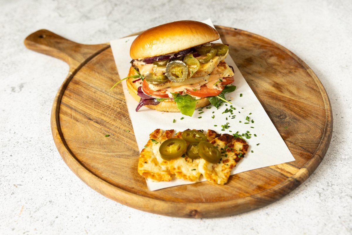 180g Angus hovädzie mäso, írsky cheddar syr, jalapeňo paprika, baby šalát, rukola, domáca omáčka, čer. cibuľa / obsahuje: 3,7
