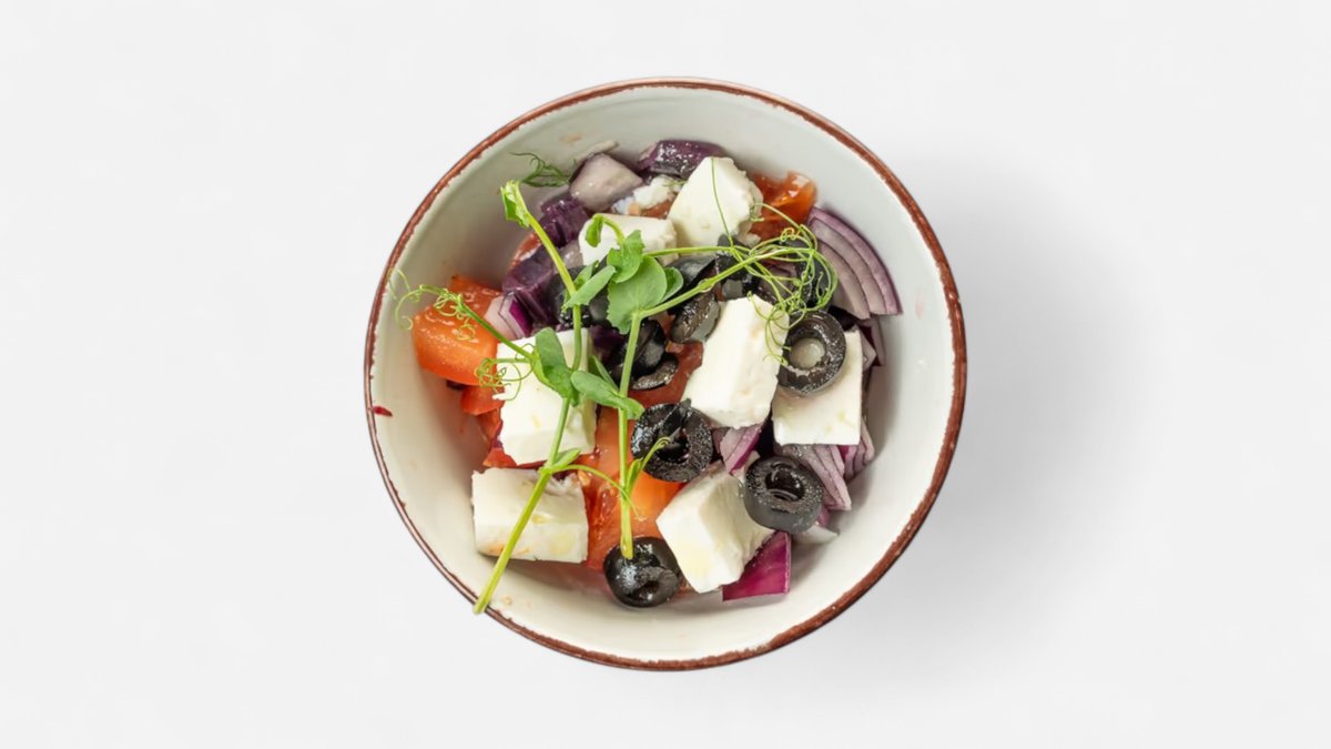Paradajky, olivy, červená cibuľa, feta syr, (hmotnosť: 120 g, alergény: 7)