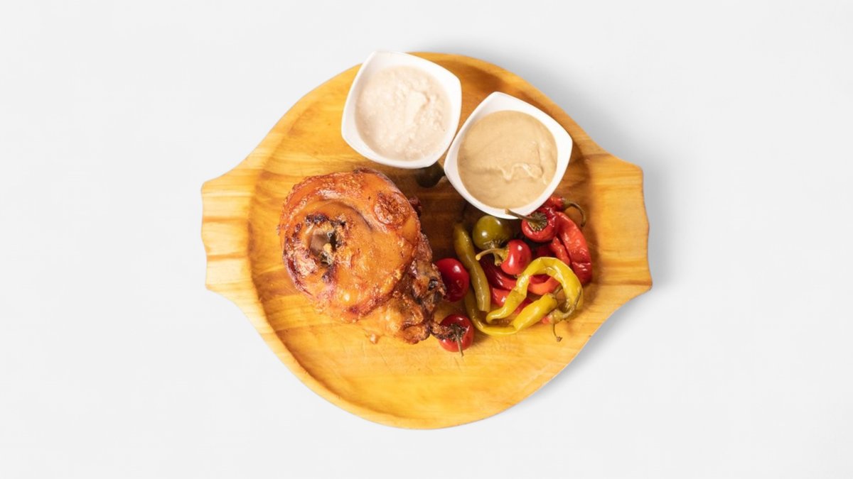 Držkový perkelt s údeným kolenom, chlieb ciabatta